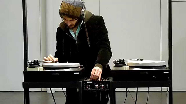 Des performances qui détournent le monde de la scène. Des disques en bé- ton que grattent obstinément de pauvres aiguilles, pour donner naissance à des musiques à peine audibles. Jérémy Chevalier transpose des composants scéniques – un instrument, des platines, un micro – dans le monde visuel afin d’interroger leur fonction première. Le dernier projet du musicien et artiste plasticien genevois invoque l’empêchement et la ruine, ou plutôt la résistance à la ruine. Une musique altérée, sortant des entrailles de la matière, dominée par le grésillement insistant d’une froide pluie automnale.