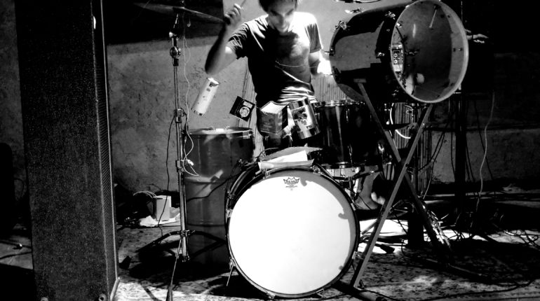 Solo de batterie amplifiée où les larsens des tambours chantent avec les métaux. De cette improvisation naissent les chansons d’un éléphant rongé de l’intérieur par une nuée de fourmis. Nourri de haïkus, de Kurt Cobain et de yoga sutras, le chant fait vibrer les organes et l’unit à la tempête des membres.