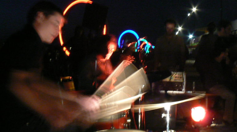 Le challenge de Will Guthrie ce soir, pour un set donc très particulier et encore une fois très physique; rassembler d’un seul coup toutes ses influences éparpillées : la tradition, la pulsation conflictuelle, squarepusher, cecil taylor, tim goldie, art ensemble of chicago, whitehouse, l’indépendance, la dependance, l’interdépendance, l’abstraction, la conduit en état d’ébriété, noonah, la polyrythmique, henry threadgill, PiL, jerome noetinger, the ames room, the necks, gravel rash, el tribal, el flamenco, caboose, ! free-jazz, ‘improvised music’, l’improvisation, l’Appalachian music, les structures compositionnelles , les guides pour improviser, l’élasticité, l’électroacoustique, l’acoustique, la tape music, le « loud », le long, le « strong », l’heavy trance, l’explosivité, l’énergétique, la virtuosité, « just the drums », le west african pop, le rigide, otomo yoshide, le « slowly elvolving », etc, etc…